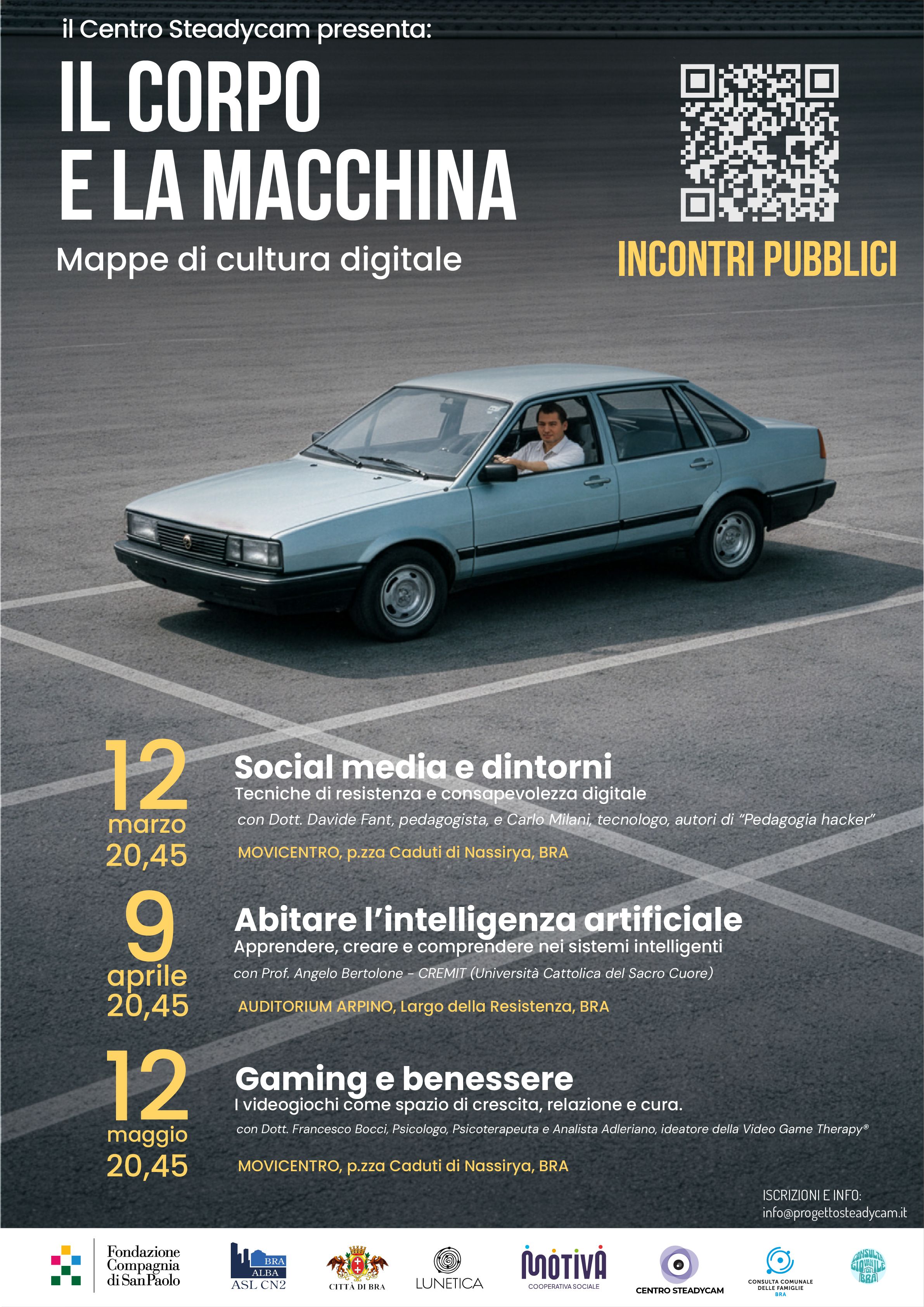 “Il Corpo e la Macchina” è un progetto realizzato in collaborazione con la Città di Bra, la cooperativa Lunetica, la cooperativa Motiva, la Consulta Comunale delle Famiglie di Bra, la Consulta Giovanile di Bra e con il contributo della Fondazione Compagnia di San Paolo all’interno del Cantiere Cultura e Salute 2025.